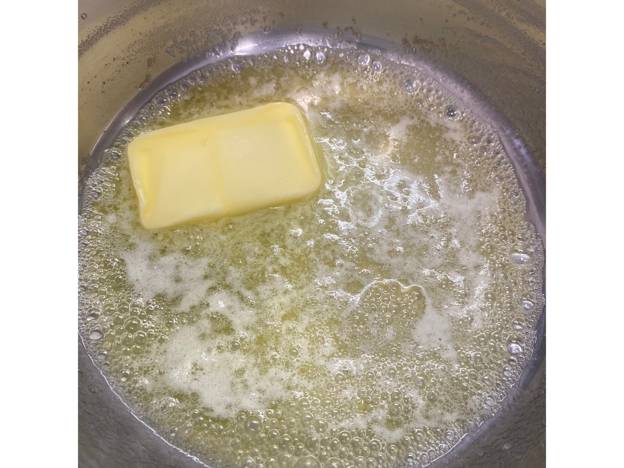 Una vez derretida, añade la harina y mezcla constantemente para formar una pasta homogénea llamada «roux». Cocina por unos minutos para eliminar el sabor a harina.