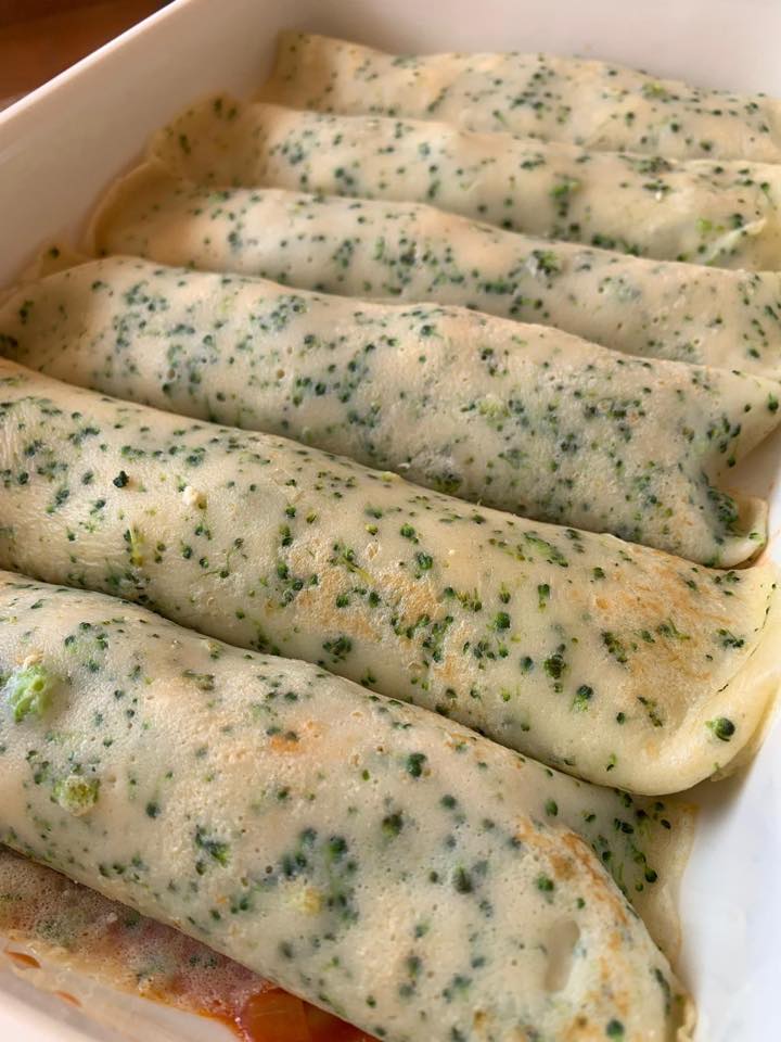 canelones con masa de crepes con brocoli